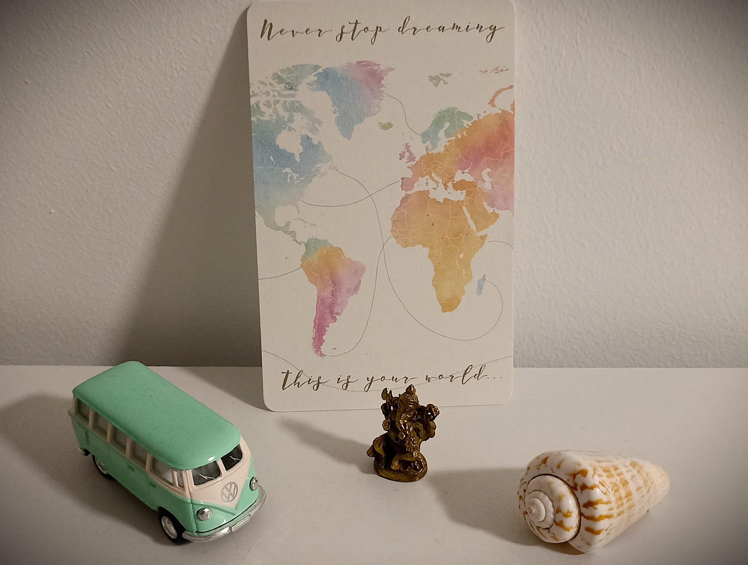Ich wandele oft durch meine Wohnung und schaue mir meine Gegenstände an. Ich habe sie alle mit viel Liebe und Sorgfalt ausgesucht und gekauft. Meine Lieblingsfarben Türkis und Petrol findet man in jedem Bereich: Geschirr, Bilder, Couch, Bett, kleine Dekoartikel, Teppiche und sogar meine Kosmetiktücherbox stimme ich farblich ab. Fast täglich frage ich mich jedoch innerlich, auf was ich verzichten könnte, wenn ich meine Weltreise antrete und nur zwei Kartons unterstellen möchte? Welche Dinge haben wirklich eine Bedeutung und können nicht ersetzt werden? Die mit Erinnerungen verknüpft sind oder die mir einfach sehr gefallen und in der Anschaffung in der Zukunft zu teuer sein werden? Ich spiele gerne mit den Gedanken, die sich mit einem minimalistischen und puristischen Lebensstil befassen. Mich befreit diese Idee alles loszuwerden, was ich, vor allem als zukünftige Weltenbummlerin, nicht benötige. Denn was brauchen wir zum Glücklichsein tatsächlich? Diese Gegenstände, an die wir uns klammern, kreieren selbstverständlich ein gemütliches, individuelles Zuhause. Ich finde jedoch, dass es vielen Menschen mal gut täte, sich von all der äußerlichen Gemütlichkeit zu lösen und nach deren Ursprung im Inneren zu suchen. Erst wenn man alles von sich abblättert, was einen umhüllt und vermeintlich Halt schenkt, entdeckt man vielleicht noch mehr von seinem eigenen wahren Selbst.