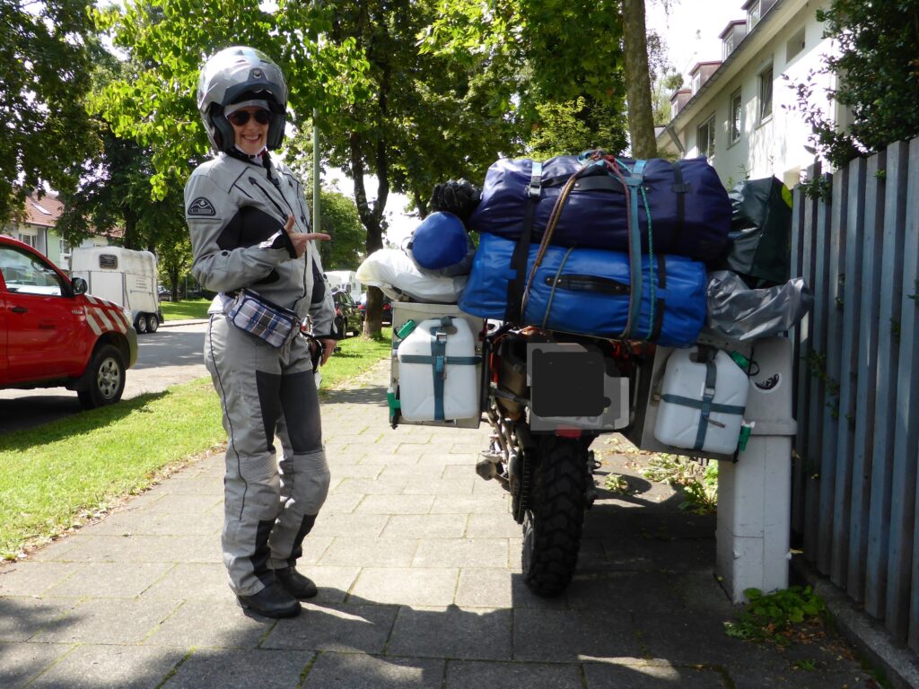 Am 1. August 2014 ging das Abenteuer für mich als Socia auf einer KTM Enduro 690 in München los. Meine Sommerferien. Vollbepackt, mit insgesamt 300 kg Gewicht inklusive Fahrer (mein damaliger Freund, werde aber in diesem Blog aus Rücksicht nur aus meiner Perspektive erzählen) und mir hinten darauf, stieg meine Abenteuerlust und Vorfreude auf den Kontinent Afrika. Auf dem Weg nach Tarifa, von wo es mit der Fähre nach Tanger gehen sollte, musste ich mich erstmal an das Fahren mit Dauergerüttel, die Abgase und Lautstärke -trotz Helm und Ohrstöpsel- des Geländemotorrads gewöhnen. Schmerzmittel halfen in der ersten Woche gegen die Rückenschmerzen, die durch regelmäßige Stöße durch das hinter mir befestigte Gepäck verstärkt wurden. Entlang der französischen und spanischen Küste konnte ich zusehen, wie sich die Landschaft, die Leute und das Klima Stück für Stück veränderte. Unterwegs sah ich als Highlight die Schlucht Grand Canyon du Verdon mit einer Tiefe von 700m, die bekannten weißen wilden Pferde in der Camargue, teure Autos und schicke Spielcasinos in Monaco und neugierige Erdhörnchen im heißtrockenen Andalusien.