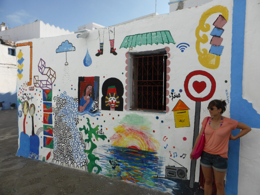 In der Künstlerstadt Asilah schlenderte ich durch die weißen Gassen mit ihren faszinierenden Gemälden an den Hauswänden, die mit ihrer Farbenfröhlichkeit etwas an „Hundertwasser“ erinnerten.