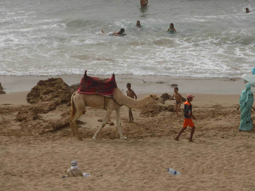 Die Reise führte mich weiter nach Sidi Ifni, ein kleiner Ort, an dem Einheimische gern ihren Urlaub oder das Wochenende verbrachten. Es bot sich mir ein Bild, dass alles, was Marokko bezüglich seiner Kultur, ausmachte. Kamele am Strand, eingehüllte Frauen, Fischer, mit Plastikflaschen spielende Kinder und eine fremde Sprache. Auf dem Weg gen Norden wurde es zunehmend voller und touristischer. Die großen Städte wie Casablanca oder Marrakesch wurden absichtlich links liegen gelassen.